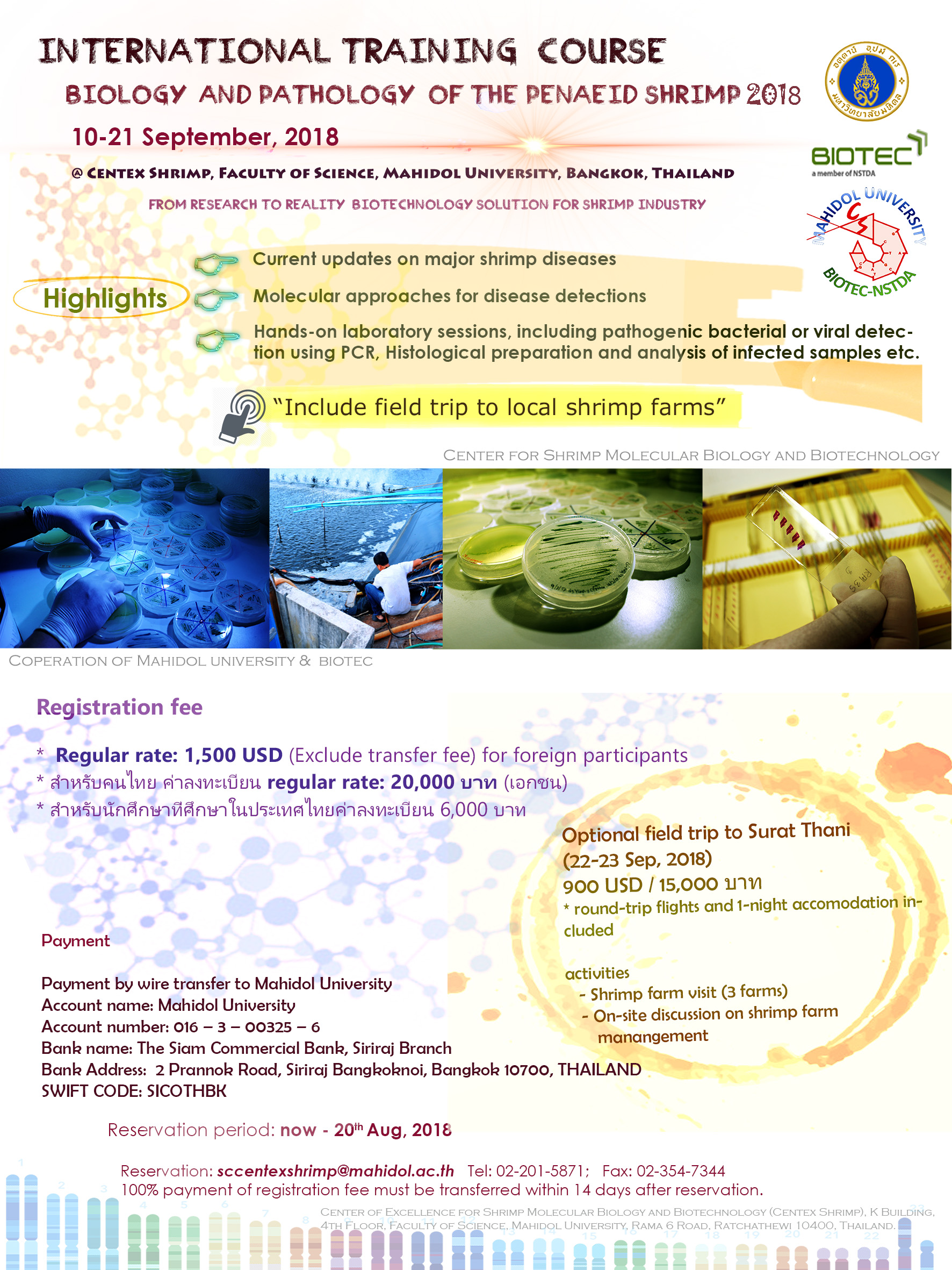 Registration is open until 20 August. For more details, please download the attached poster, email sccentexshrimp 'at' mahidol.ac.th or call us on +66 2 201 5871.